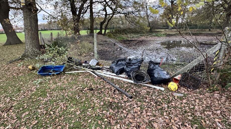 We extend a huge thank you to Harry Foreshaw, Kat Richards and Billy Ward, volunteers from the charity Froglife, who led the effort. They successfully removed several large objects that posed a serious risk to wildlife, including old goal posts, a sled, and various other plastic items.