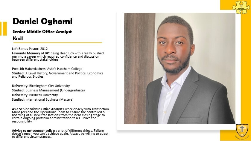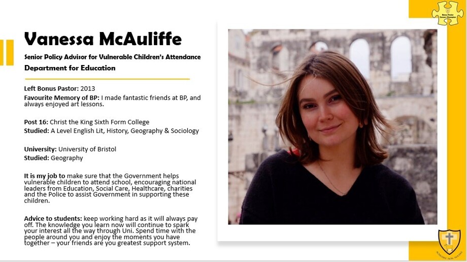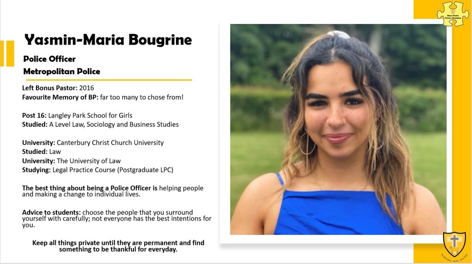At Bonus Pastor we are proud to have a thriving Alumni Network. A student’s journey with us does not finish on GCSE Results Day; they remain part of the Bonus Pastor family forever, and we relish celebrating their future successes with them.